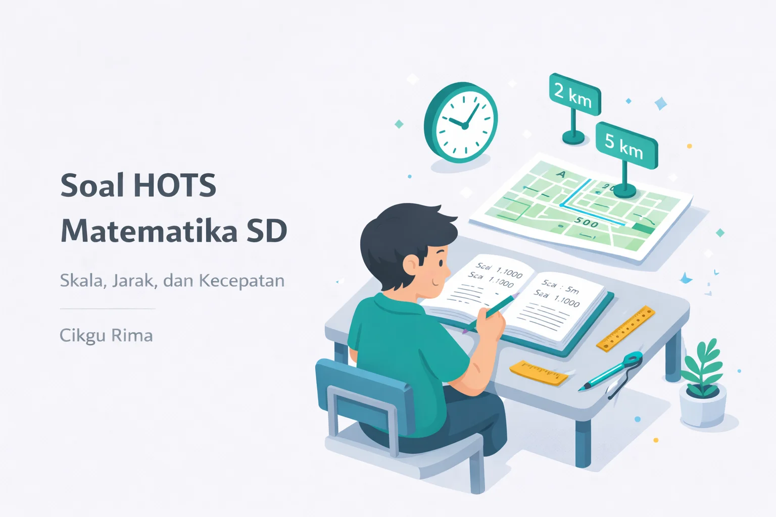 Artikel ini membahas bagaimana prinsip penyusunan soal HOTS bekerja pada materi skala, jarak, dan kecepatan — lengkap dengan contoh soal yang bisa langsung digunakan atau diadaptasi di kelas.